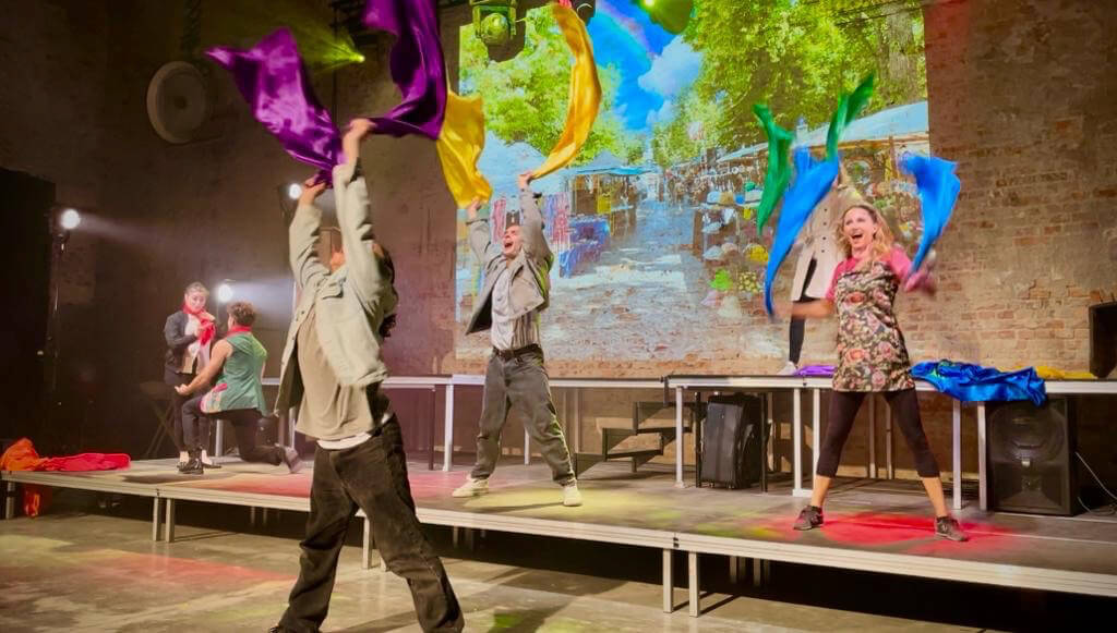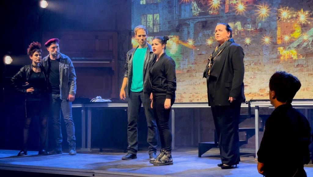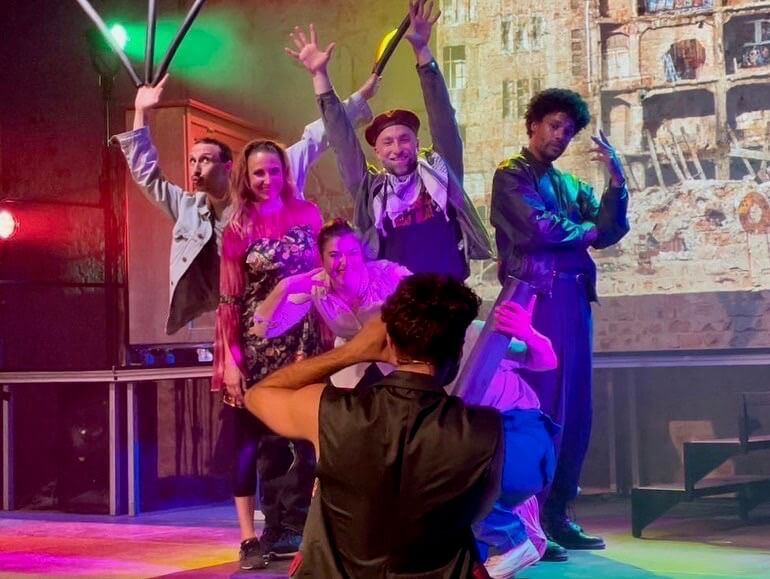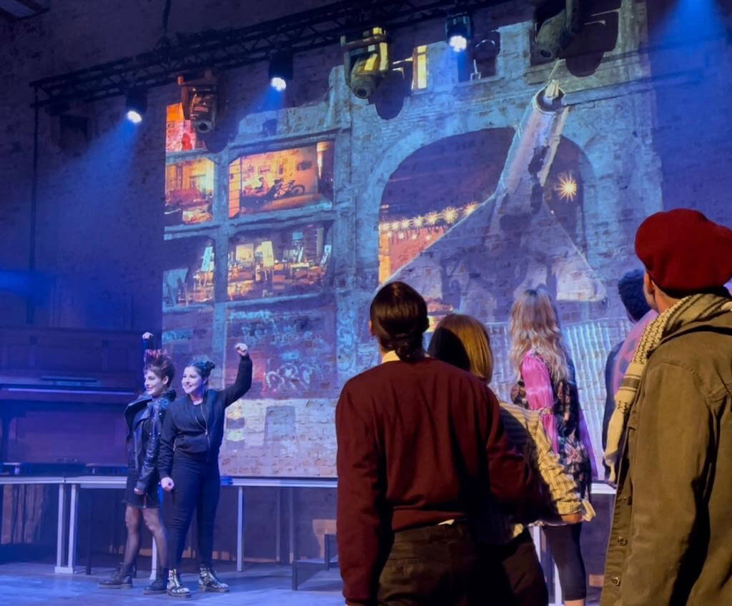 To a packed house, Let’s Talk Tacheles came to the stage for the first time at the Musikbrauerei, an underground event location in the ruins of an historical brewery. Together with our talented and dedicated cast, live band, and crew, and after a mere two-week rehearsal, we brought our musical to life. Complete with choreography, staging, and video projected against the raw backdrop of an exposed brick wall, Let’s Talk Tacheles transported an international audience to the arthouse Tacheles, East Berlin, 1990. Witnessing the tears and hearing the laughter of young and old alike was an incredible affirmation that our story resonates and needs to be shared. For that, we are now pursuing further financing and production partners.